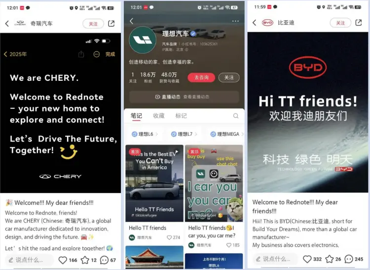 各大車企也不甘示弱,包括奇瑞集團、比亞迪、廣汽豐田、上汽MG名爵、奧迪、理想、零跑等在內的多家車企迅速抓住機會,在各自的小紅書官方賬號發佈英文版的相關信息。