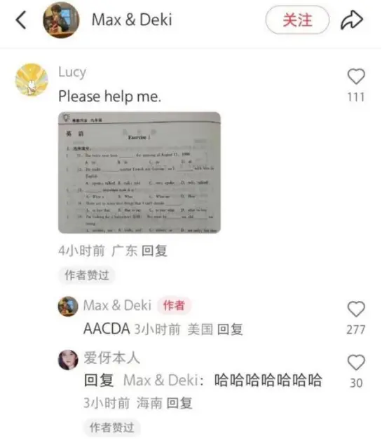 讓人喜聞樂見的是,這場交流似乎讓中美網友都找到了新的樂趣。中國人樂此不疲地糾正老外們的中文發音,甚至請美國網友幫忙解答英語作業。一時間,在中學英語課本上因為總向外國筆友寫信而被大家記住的“李華”又火了,大家調侃道,“李華終於收到了回信”“輪到李華的美國朋友幫李華寫英語作業了”。