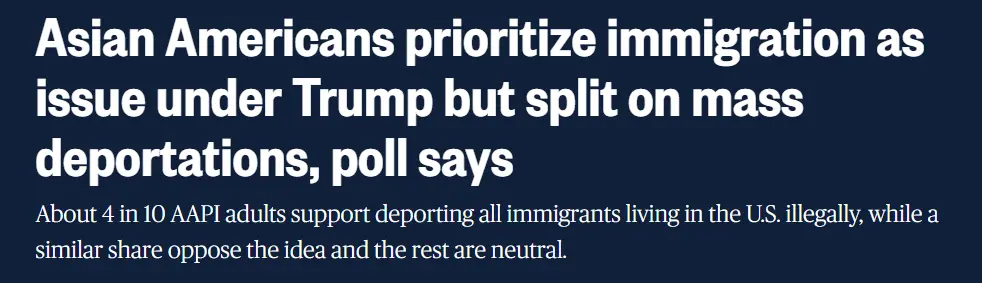 40%亞太裔美國人支持驅逐所有無證移民,與反對者人數相當_風聞