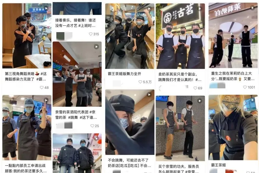 霸王茶姬、1點點、古茗、茶百道等品牌員工,在社交平台發佈跳舞視頻,引發大量圍觀點贊。