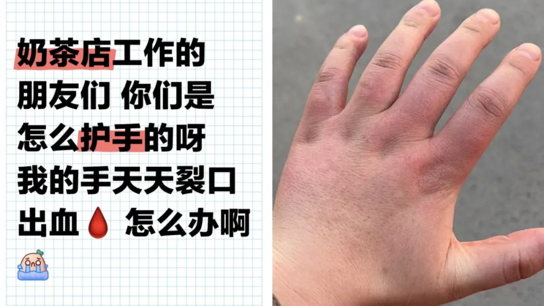 最近,我注意到小紅書、抖音等平台湧現出一批奶茶店員的“求助帖”——“冬天怎麼保養手啊?”