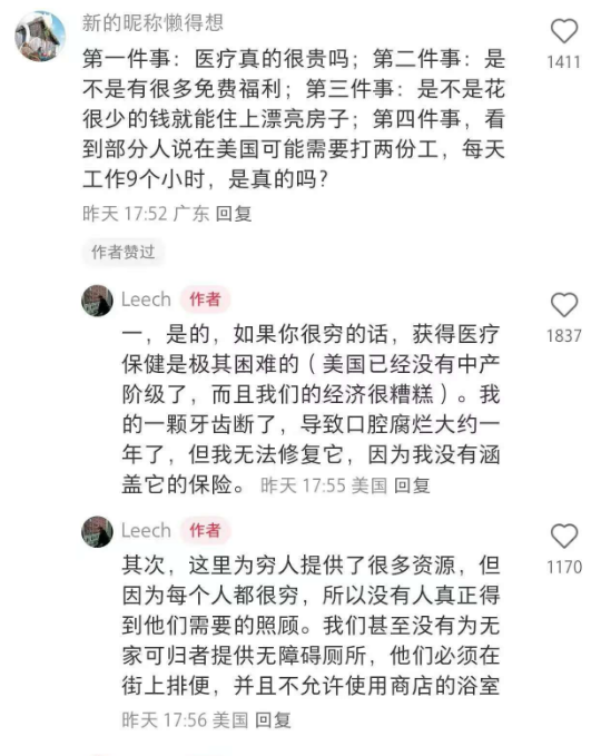 他們還第一次知道,在很多中國人心目中,美國居然是“夢中天國”,“中奸殤”們描述的美國——人人住大house、刷盤子三個月就能買房、人均年收入能有四五萬美元、牛排隨便吃、到處都是“一美元炸雞”……美國人破防了,問:“你們説的是哪個美國?你説誰收入有四五萬?有這麼好的工作趕緊介紹給我!我也是美國人,我怎麼不知道自己生活在天國裏”?