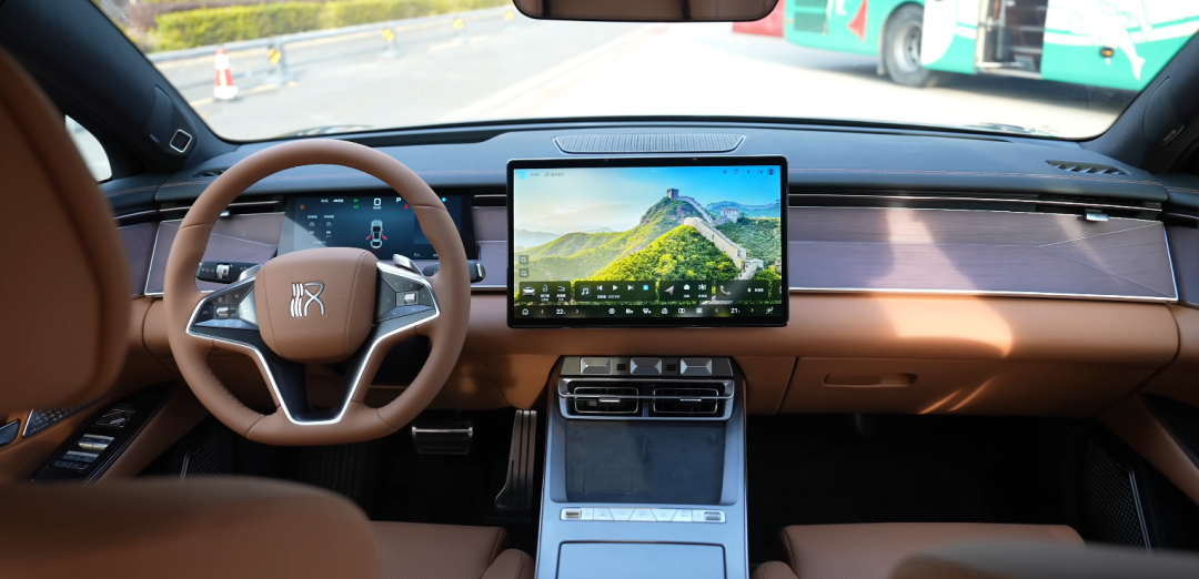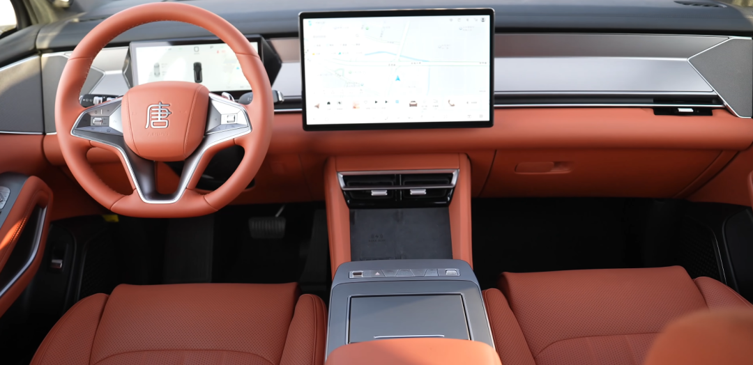 但很有意思的是,相比外觀設計上有來有回的變化,漢唐 L 在內飾設計上的更新非常相同的。取消了之前很多曲線、中控屏幕可以旋轉的複雜設計,變成了現在很流行的儀表中控雙屏幕、各種線條都相對簡化的清爽風格。