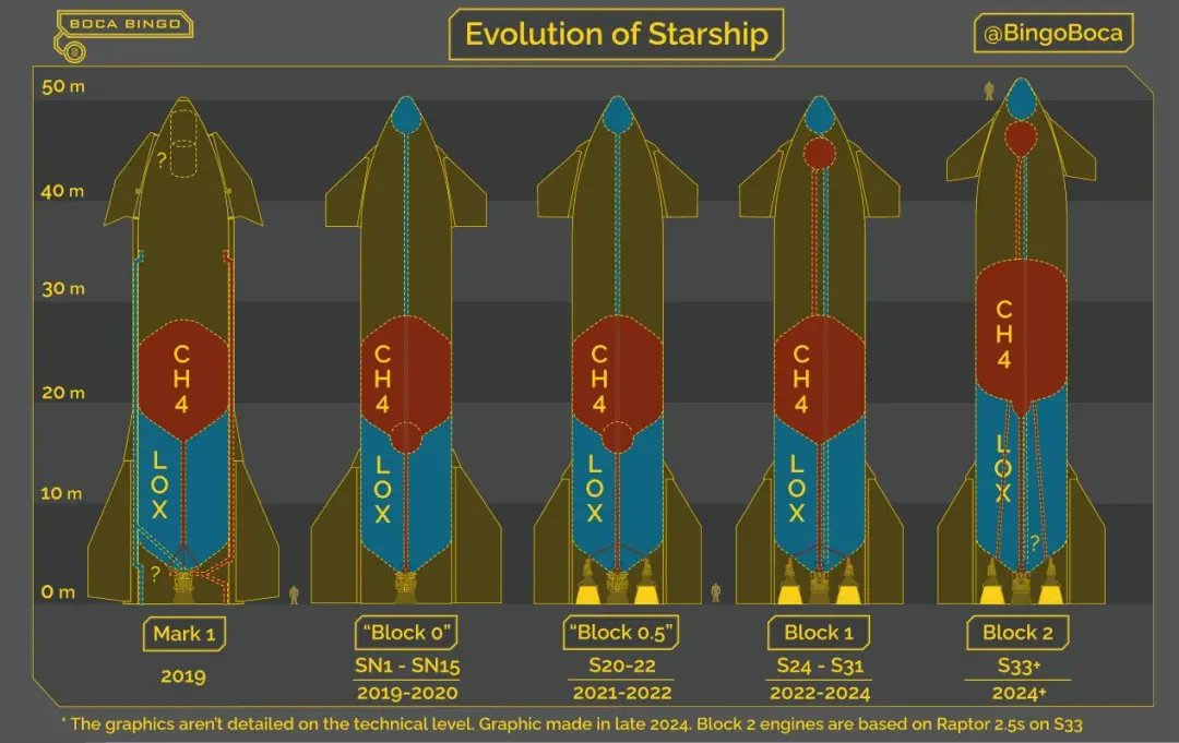 因為這次的星艦飛船整個都翻新成了 V2 版本,相比前幾次的 V1 版本改動的太大了。