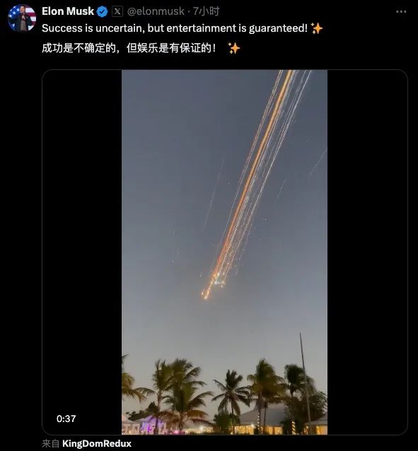 就在今天大清早,美國時間當地晚上 8 點, SpaceX 的第 7 發星艦成功起飛,然後在距離地面 145km 的高空,放了一個巨大的煙花,隨即化為一次人造流星雨。