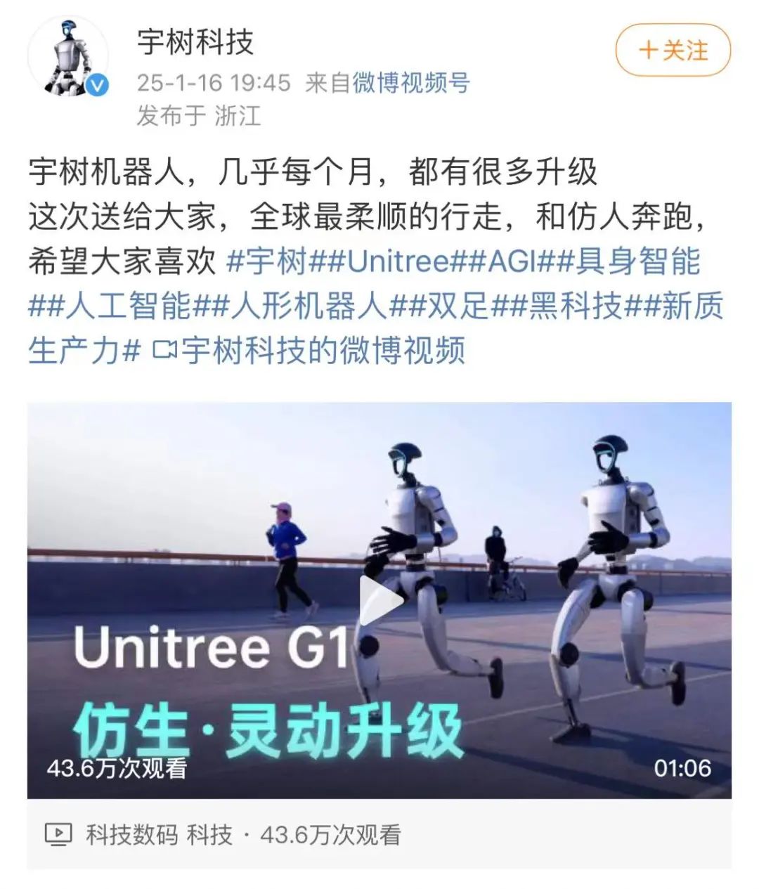 短短一分鐘的視頻,把 G1 的靈活性展現得那叫一個淋漓盡致,跑步的動作、擺臂的姿勢,跟吃了德芙似的,反正視頻一出,就在網上引起了不小的轟動。