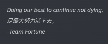 遺憾的是,遊戲上線一年有餘,總共也沒更新過幾次。去年7月,遊戲開發者Dizzie在更新公告中向玩家們透露了遊戲開發的內幕。按照Dizzie的説法來看,《Fortune’s Run》是他與妻子兩人合力完成的作品,不過由於妻子近期重病住院做了一場大手術,他不得已只能暫緩遊戲開發。在這條公告的最後一段,Dizzie在落款處寫下了他對未來的期許——盡最大努力活下去。