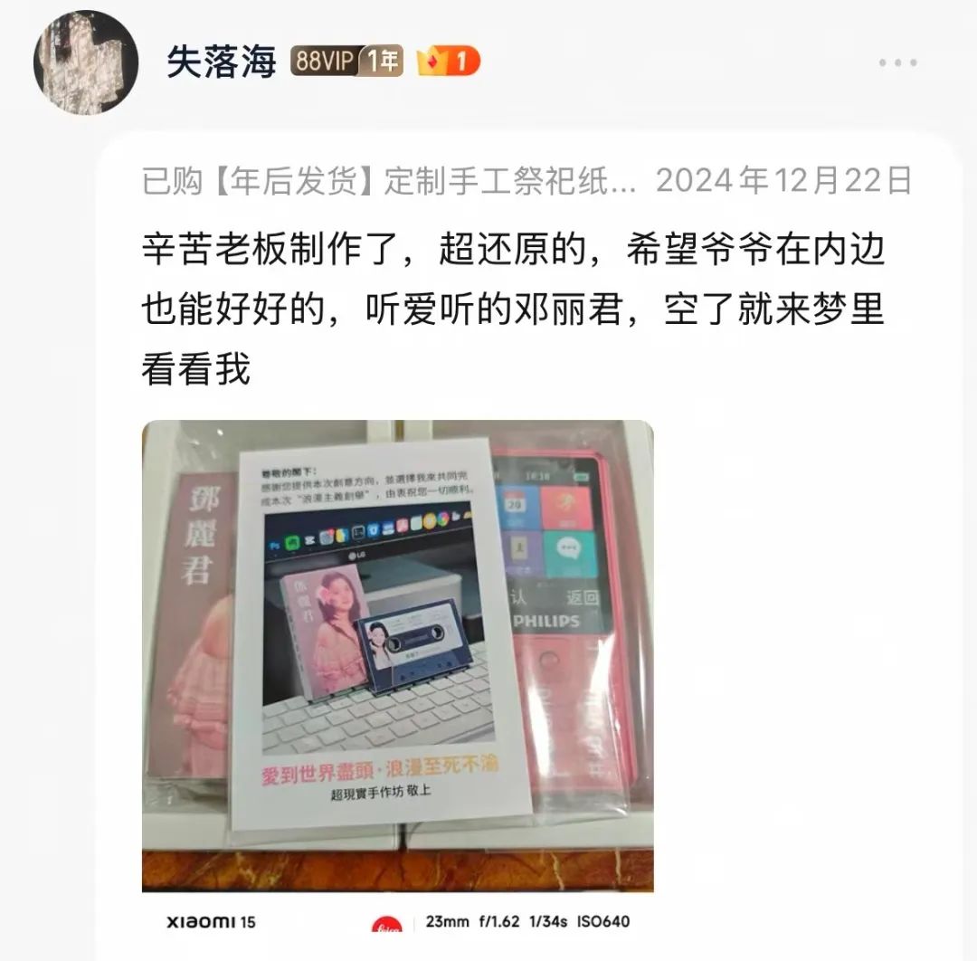有人定製了鄧麗君的磁帶,希望爺爺在那頭也能聽鄧麗君。
