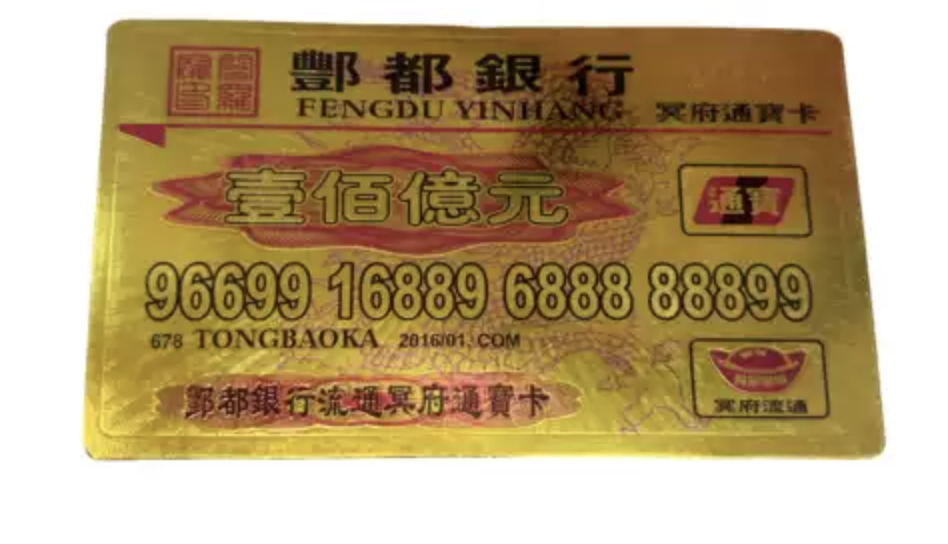 各種heaven bank、hell bank發行的美元、英鎊、歐元、越南盾等紙鈔冥幣;