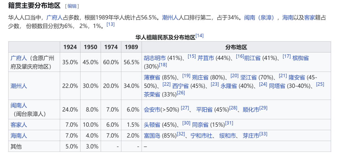雖然東南亞各國的華人人數眾多,但所在國一般都將其歸類為單一族羣——華人,唯獨越南是個例外。