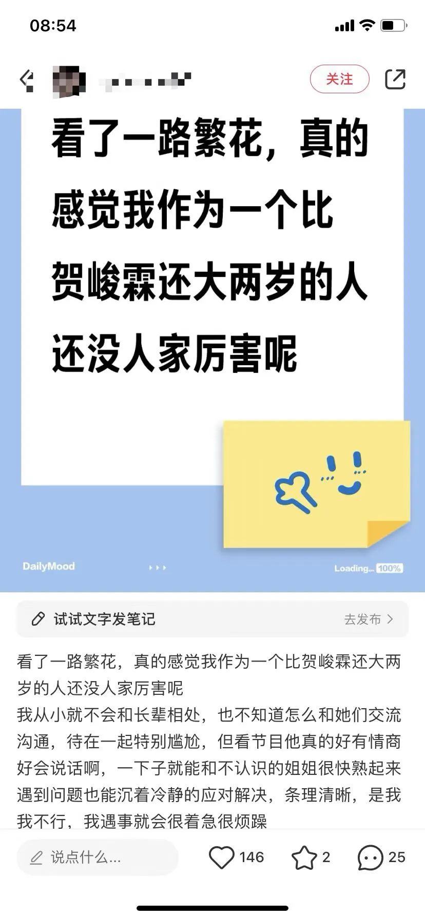 而弟弟與姐姐們的相處模式,讓不少年輕觀眾驚呼“太厲害”“學到了”,甚至春節回家可以直接現學現用。有網友表示“感覺我作為一個比賀峻霖還大兩歲的人還沒人家厲害,但看節目他真的好有情商好會説話啊,一下子就能和不認識的姐姐很快熟起來遇到問題也能沉着冷靜的應對解決,條理清晰。”