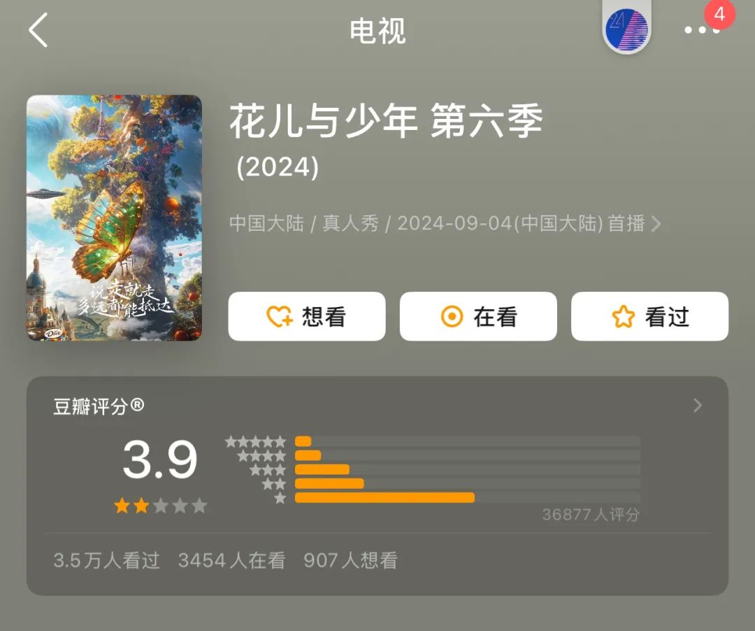 當然,“花學”的出現也不能一概歸之於觀眾的過度解讀,節目組的環節設置及後期的剪輯呈現,也被指有意放大嘉賓衝突以引發公眾熱議。《花兒與少年6》豆瓣3.9的低分,一定程度上意味着這種綜藝模式遭遇了自我反噬。