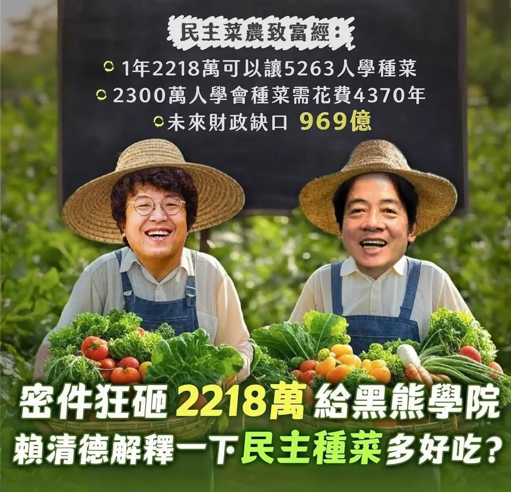 中國國民黨作圖諷刺沈伯洋“民主菜農”