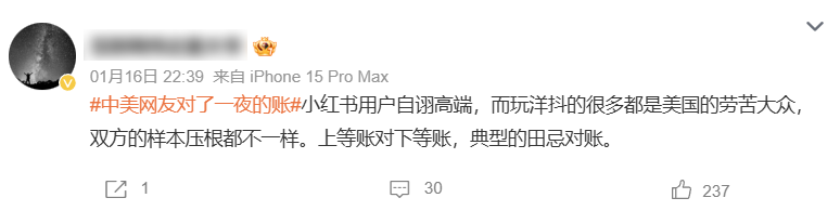 由美國政客無端禁止Tik Tok的這出鬧劇,引爆了大批美國網友前往小紅書奇幻漂流,進而掀起了被戲稱為中美“大對賬”運動,大家對各自家長裏短的生活成本和環境條件有了沒有“中間殤”的直觀認識,如今已經持續了上百個小時,依然仍處於樂此不疲的狀態。