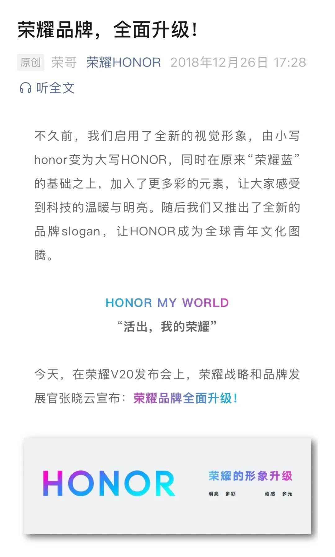 榮耀品牌升級公告,圖源榮耀官方微信公眾號