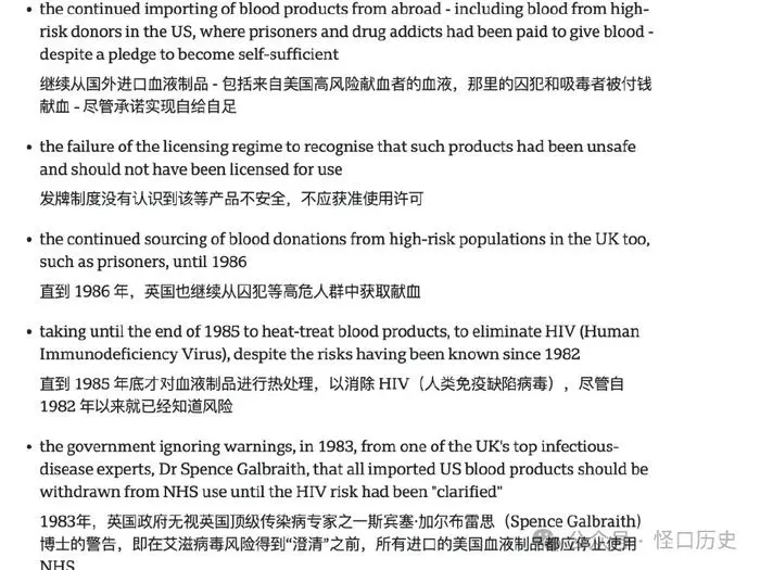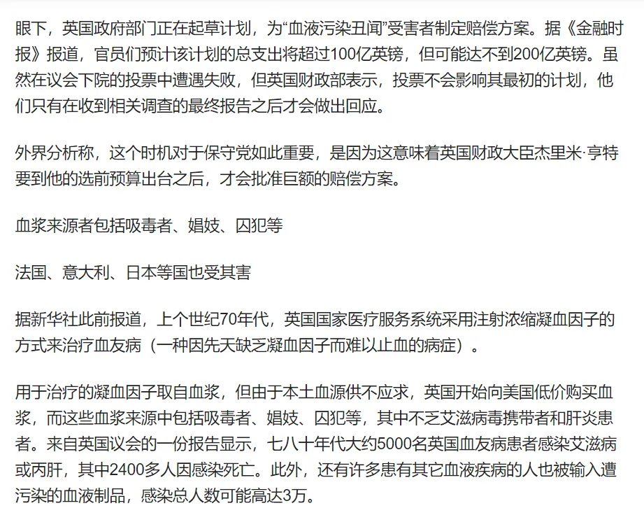 這一事件的嚴重程度,即使是以這幾十年英國政府的拉跨,都可以説是首屈一指的。七八十年代檢測技術不發達,造成了嚴重的問題,為什麼不在發現了問題之後想辦法解決,拖了三四十年才公之於眾,這連遲到的正義都算不上。無論是美國那邊的血漿公司,還是英國這邊的醫療系統,在這一事件中的表現都毫無道德可言。