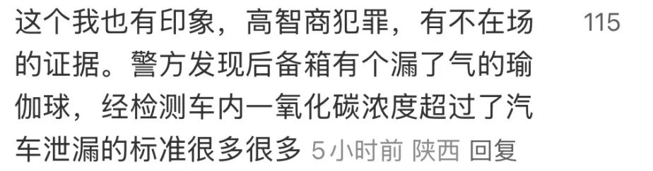 警方先是懷疑一氧化碳來自汽車,仔細調查了那輛車,發現不存在一氧化碳泄漏問題;之後又懷疑車尾的瑜伽球,但也沒檢測到一氧化碳。