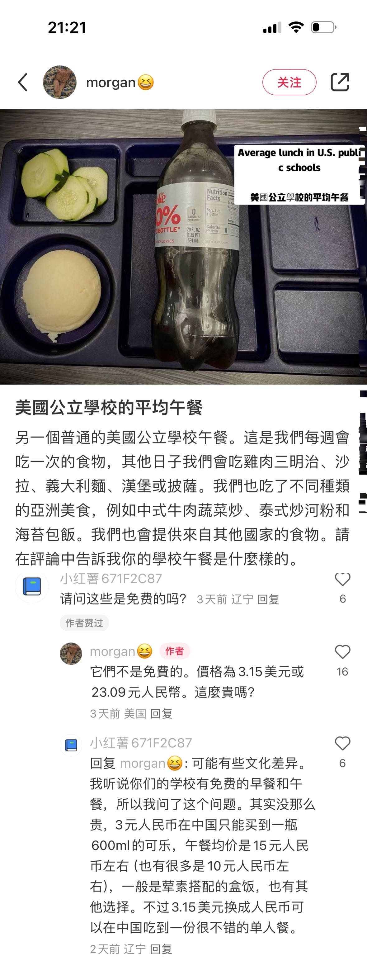 中產寶媽:我不知道為啥不這樣幹(付費提供更好的食物),但你説的也許是對的,因為免費所以給的東西那麼糟糕。在美國的學校提供這些不健康食品和劣質食品是很常見的情況,因為學校要省錢。