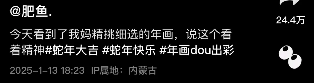 不久之前,這位博主就發了個視頻貼,表示自己的媽媽買了張蛇年的年畫,看着喜氣洋洋,本是好事。