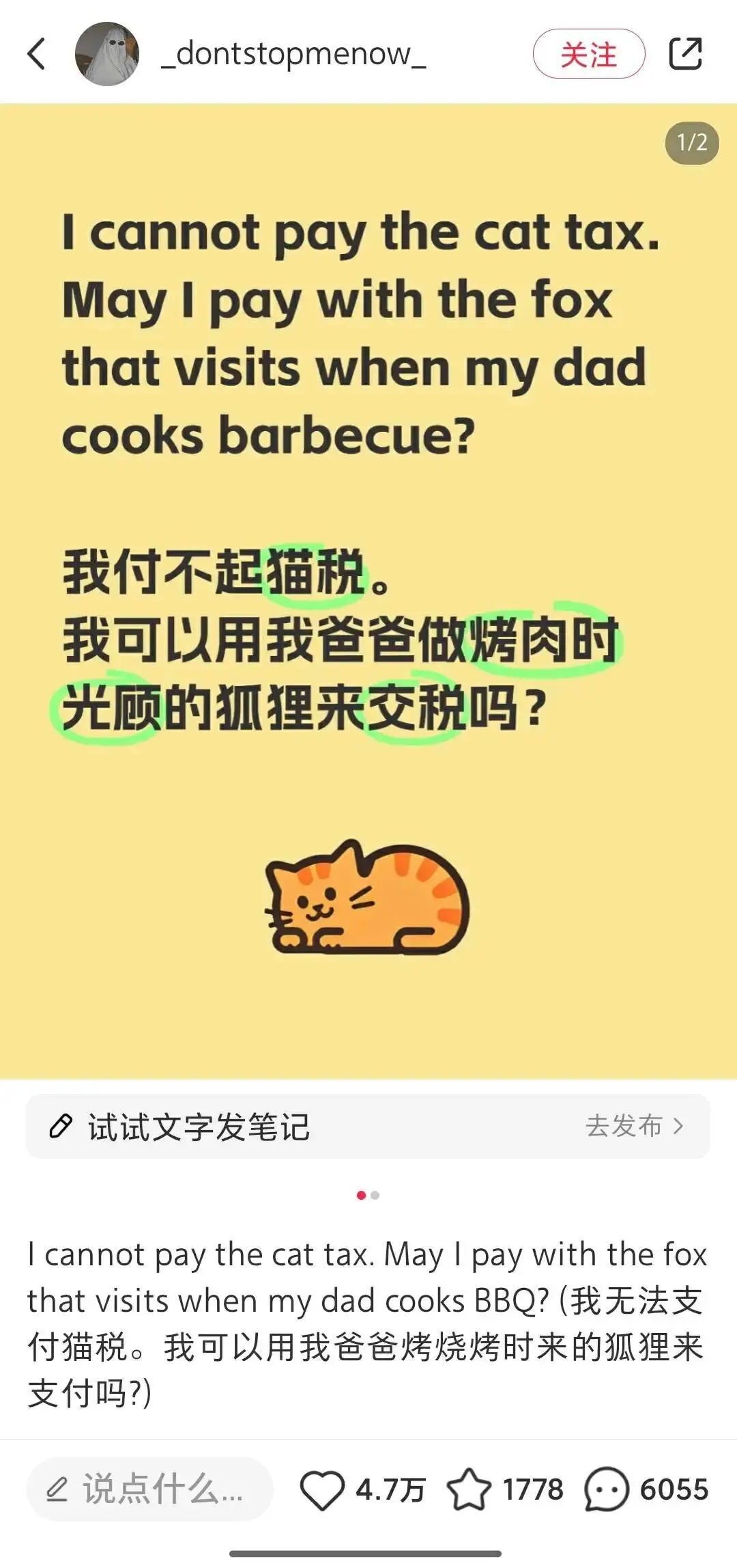 第一個發明“交貓税”的人已經在小紅書受到了無數的誇讚。