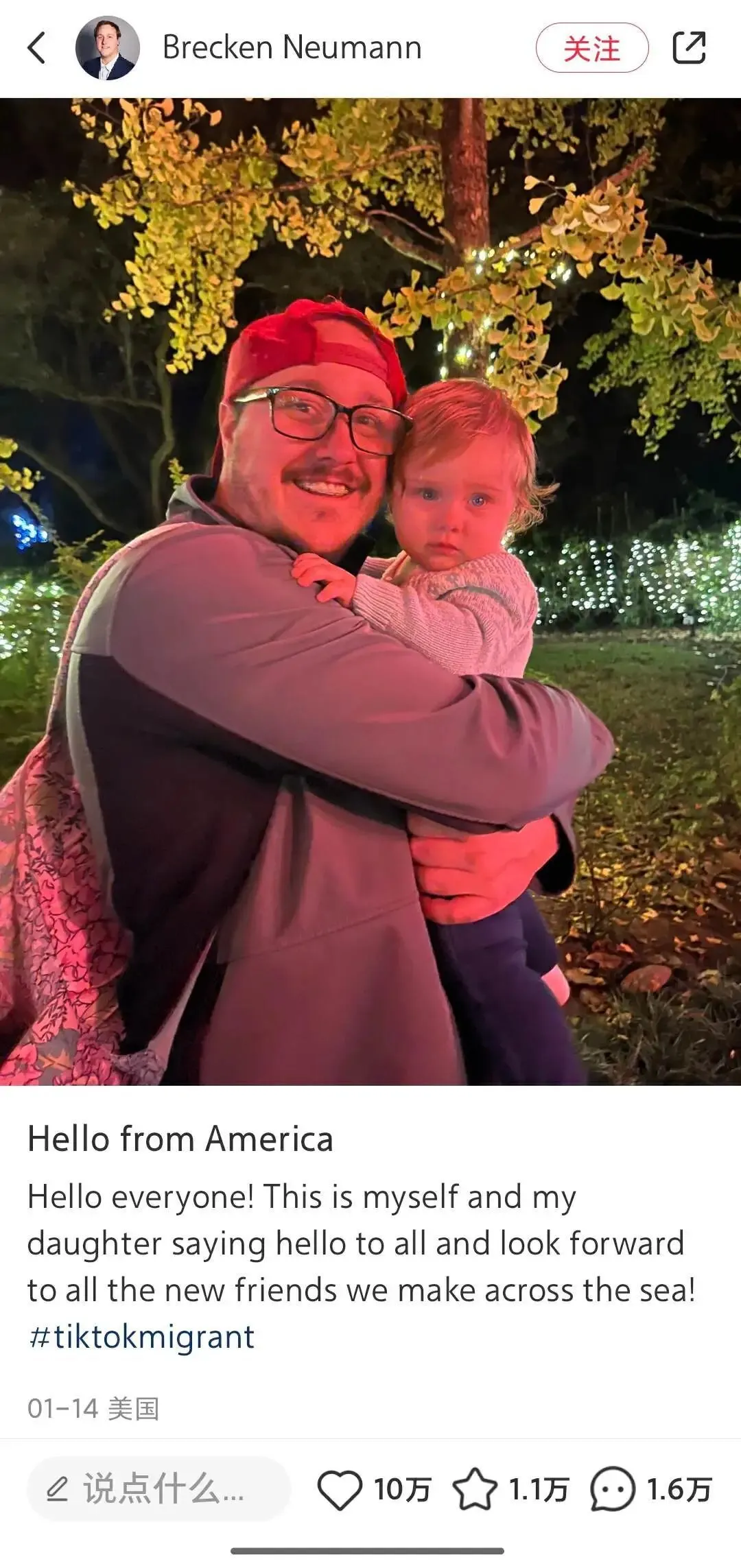 Nathaniel 是一名美國迪士尼工作人員,他發了一張“交貓税”的照片後收到了非常多的互動。這讓他覺得小紅書和早期的 TikTok 很像,他可以隨意分享自己的生活,而不用擔心別人怎麼看待。他一直喜歡嘗試新的應用,而很久沒有一個APP會讓他感到如此興奮——至於Facebook 和 Instagram?他已經放棄使用這些“老舊”APP了。