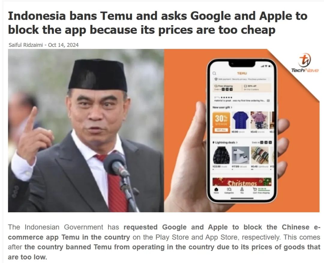 印度尼西亞政府曾也要求蘋果與谷歌在其應用商店中限制TEMU的上架,而相關業務在印尼已處於無法使用狀態。