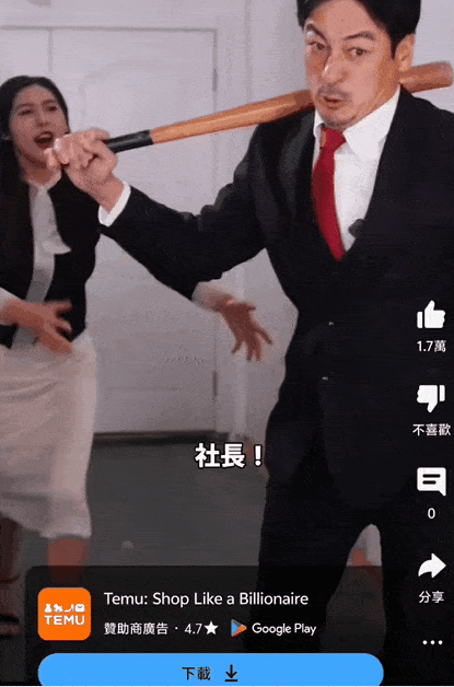 光是完美承襲拼多多的短劇式廣告,早已在世界範圍內大殺四方,在套公式的創作思路下,軸心國和同盟國基本都被拍了個遍。