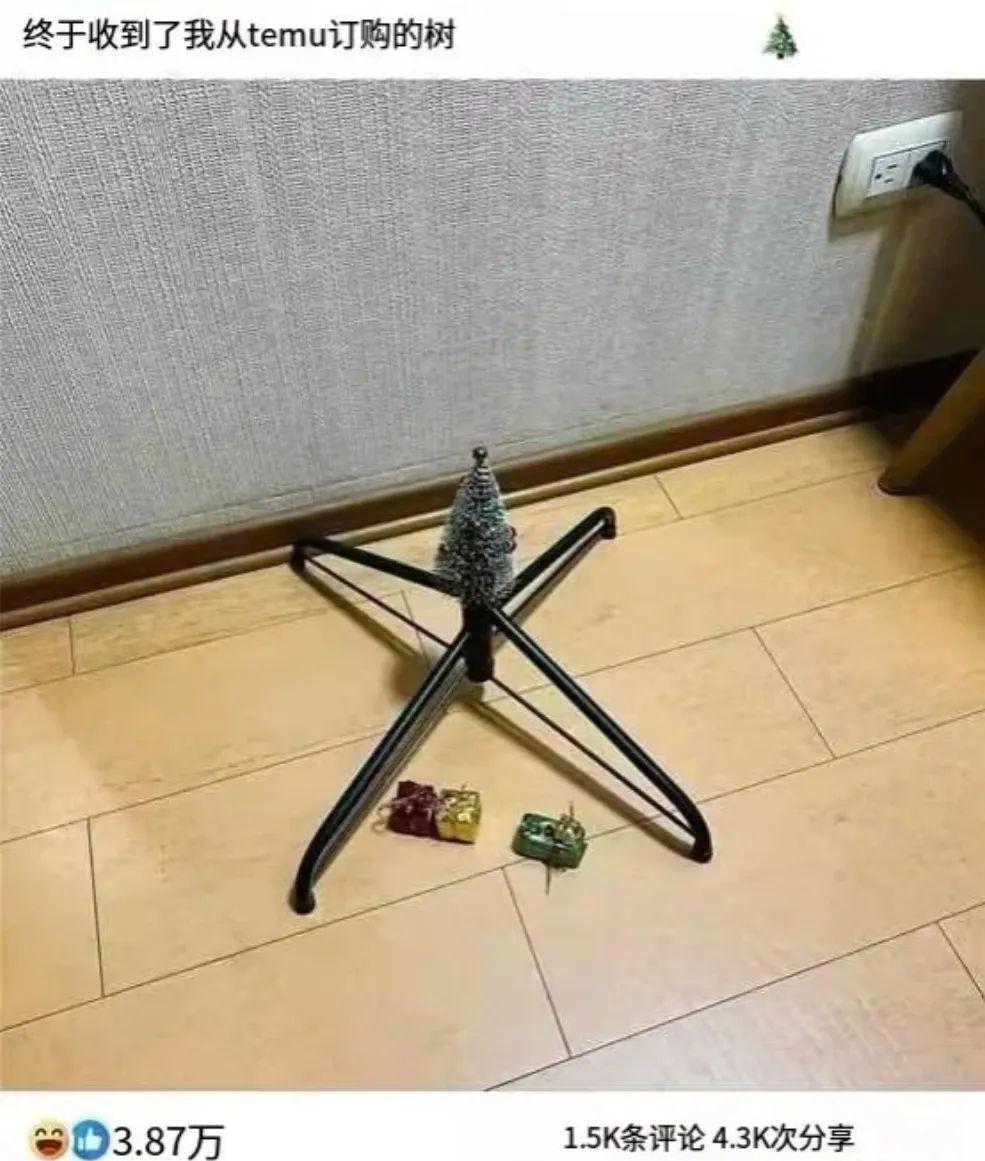 聖誕節期間,TEMU(即海外版拼多多)上售賣的超優惠聖誕樹曾引來一眾老外激情剁手,只是到貨後才明白了“一分錢一分貨”的千古道理。