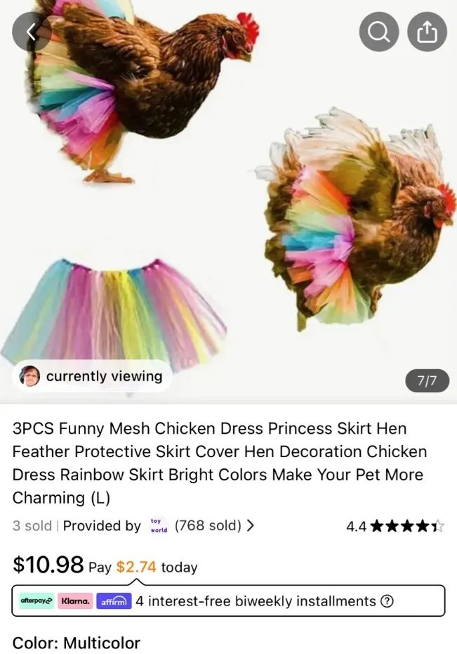畢竟沒有純血的拼夕夕基因注入,哪裏能在網上自由選購給雞做裝飾的“LGBT配色公主裙”,既做到保留了抽象的原汁原味,也兼顧了海外市場的選品需求。