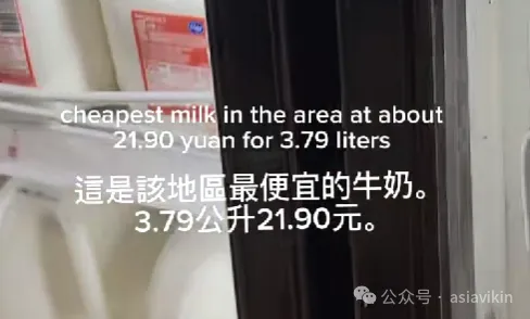 然後買了最便宜的牛奶一桶(3.79升,2.99美元合21.9元)。