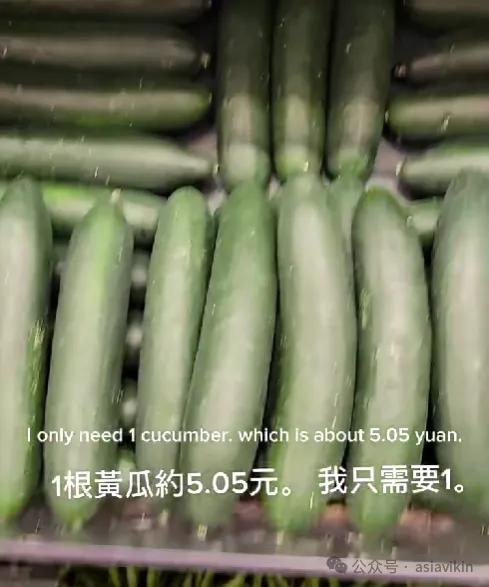 一根黃瓜(合5.05元rmb,她在視頻裏已經換算好了,下同)。