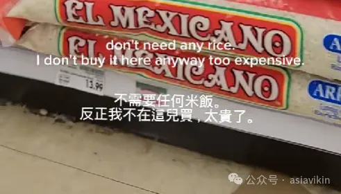 超市大米太貴,不買。我看到有一種大米包裝是20磅(約18斤),26.99美元(合197.57元)。