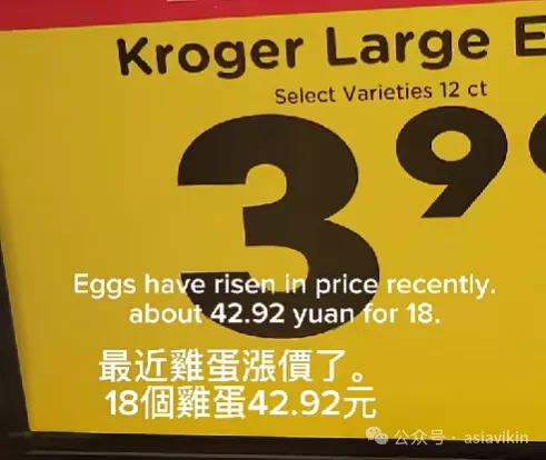 然後想買雞蛋(18個,5.98美元合42.92元)其實漲價了,但是也已經賣光了。