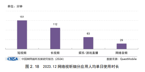 但是,我們可以引用這麼一組數據來類比,由中國網絡視聽節目服務協會發布的《2024中國網絡視聽發展研究報告》顯示,網絡視聽已經成為中國互聯網第一大應用,其中,短視頻為網絡視聽第一大應用,我國短視頻人均單日使用151分鐘,我國移動端網絡視聽應用人均單日使用時長超3小時。也就是説,短視頻使用是絕對絕對絕對第一大應用。每人每天在這玩意上面至少消耗一部電影的時間。假設美國人民網絡條件不好,使用時長按照中國人民的流程算。那麼美國人民一天也至少要在短視頻上消耗一部電影的時長。