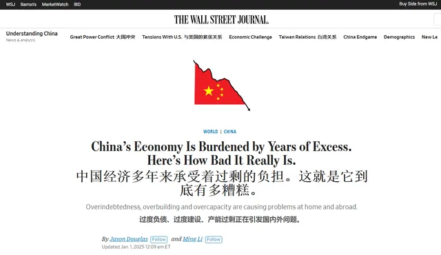 2025年1月1日,美國《華爾街郵報》:《中國經濟多年來一直承受着過剩的重負,它的實際情形比你想象得還要糟糕》(China’s Economy Is Burdened by Years of Excess. Here’s How Bad It Really Is)