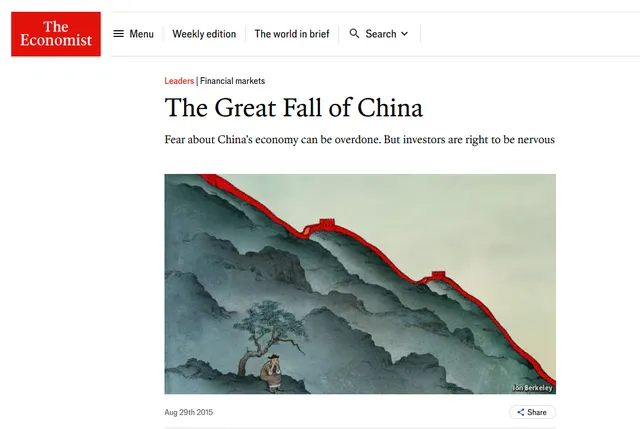 2015年,《經濟學人》:《中國迎來經濟大衰退》(The Great Fall of China)