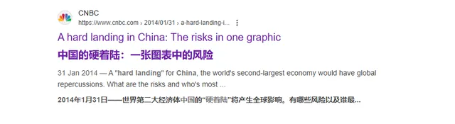 2014年,CNBC新聞網:《一張圖看懂中國的硬着陸風險》(A hard landing in China: The risks in one graphic)