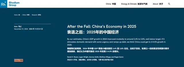 2024年12月31日,美國盈利性智庫榮鼎諮詢:《衰退之後,2025年的中國經濟何去何從?》(After the Fall: China’s Economy in 2025)
