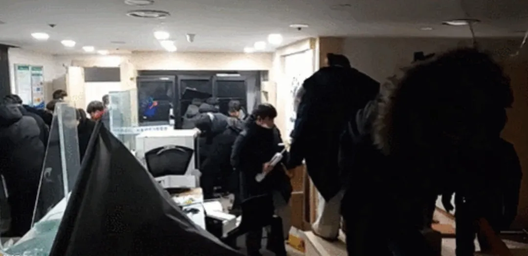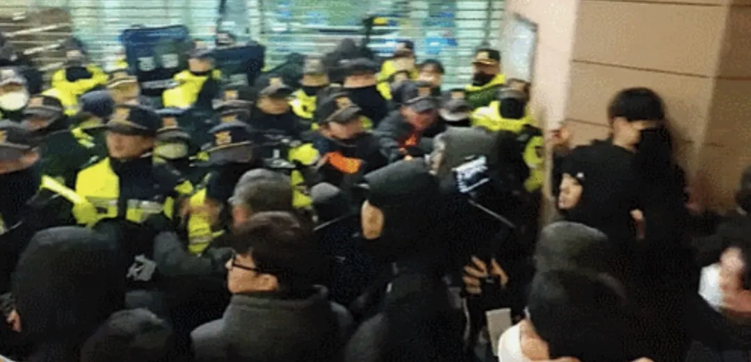當天凌晨3時左右,首爾西區地方法院正式對已因“非法戒嚴”鬧劇被彈劾的韓國總統尹錫悦發佈逮捕令。知曉這一消息後,聚集在法院外的尹錫悦支持者立刻開始“政變”。他們衝開警方設置的路障,翻牆、破門、破窗進入法院大樓,向警察投擲椅子和煙灰缸,噴灑滅火劑。視頻顯示,還有人從警察手裏搶到了警用盾牌,用來砸開玻璃門。大樓裏,示威者一邊喊着尹錫悦的名字,一邊高呼“殺光他們”。