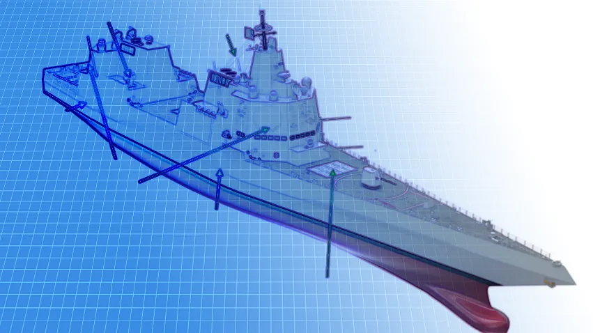 不過,即使是兩種構型,也有一定的相似之處,那就是採用了類似於DDG1000的艦橋設計,大型相控陣雷達架在航海艦橋的上面,這證明了該艦對於防空反導能力的視野要求比較高。某種意義上來講,也算是延續了“朱姆沃爾特”級對於艦載船電系統,尤其是對空警戒雷達的基本設計。