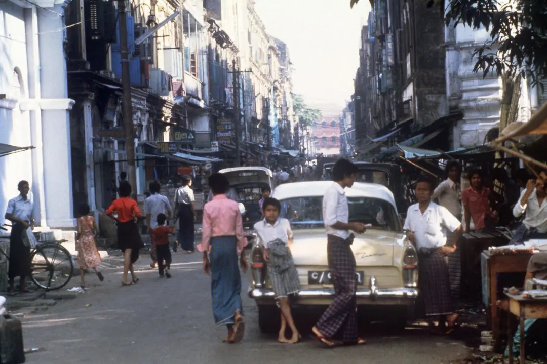 ◆1983年,仰光街頭熙熙攘攘的人羣。