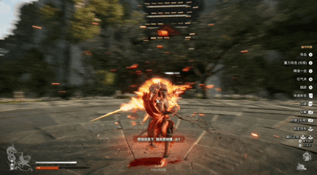 不過每次普通都會消耗燃燒狀態,類似《 黑神話:悟空 》裏變身廣智放技能會減少持續時間。通過特定連招,則可以增加燃燒狀態的持續時間。