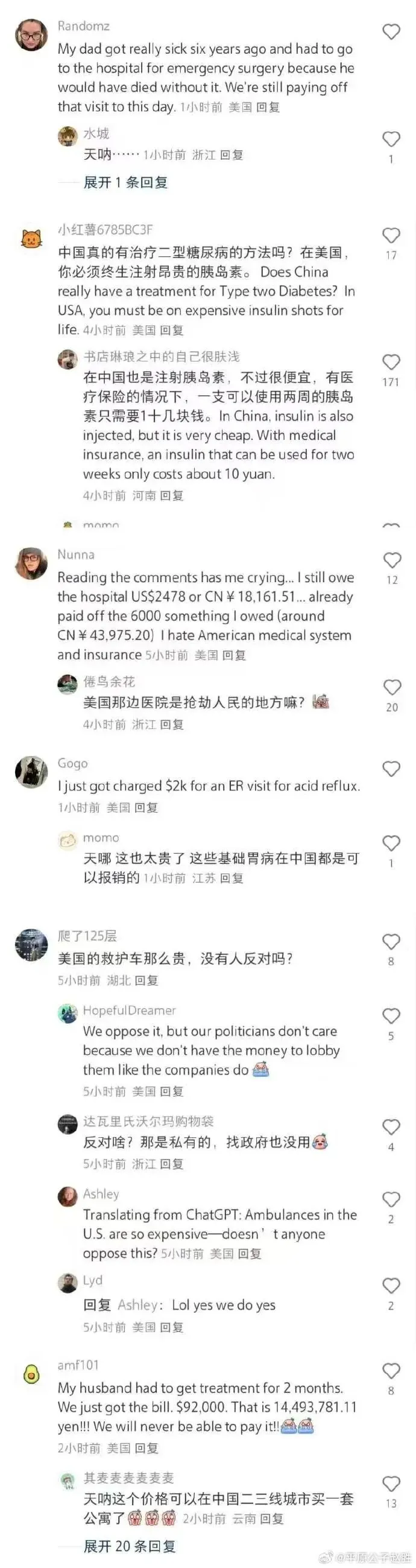 然後是美國人對中國廉價醫療和高生活水平的震驚。