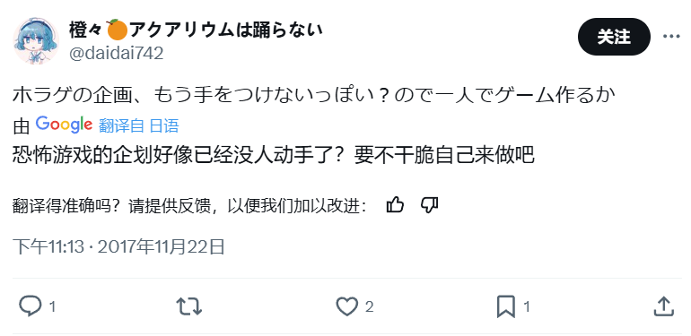 2017年11月22日,對橙々來説應該是個值得紀念的日子。這一天,她頭一回發覺跟自己約定好一起做遊戲的那幾位朋友,好像已經有很長一段時間沒有動工了。