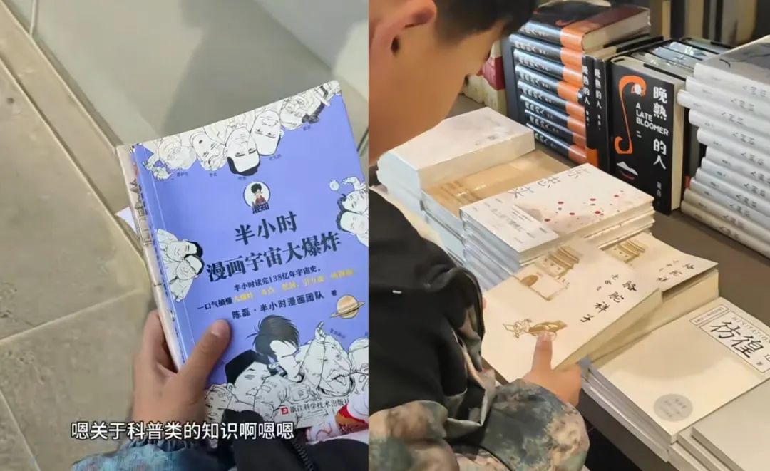 在拿起了《半小時漫畫宇宙大爆炸》後,燒餅哥又看出了兒子喜歡科普類的書籍。於是他積極回應説,這周看完了,下週再買其他書。