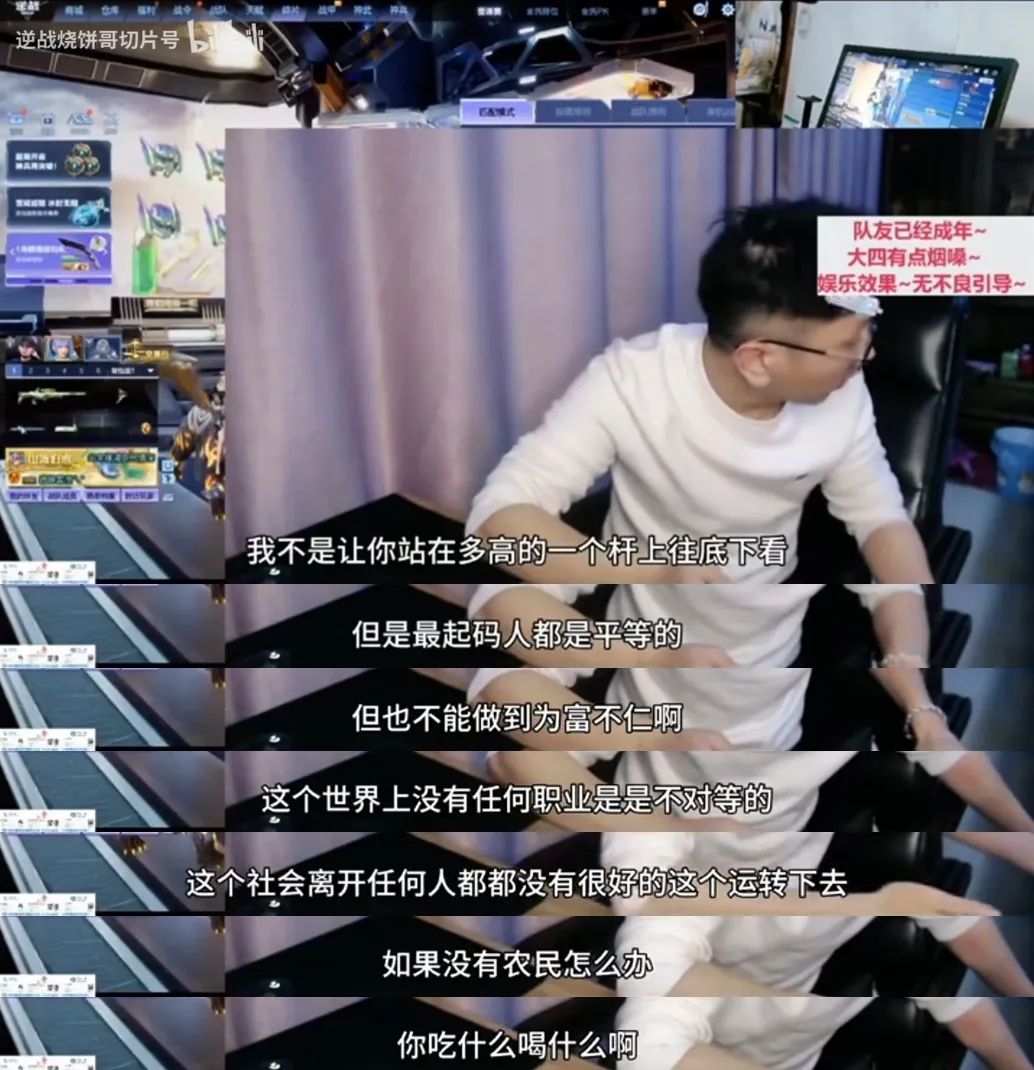這只是最近爆火的抖音遊戲主播@逆戰燒餅哥,以身入局進行的一次大型賽博教育實踐。