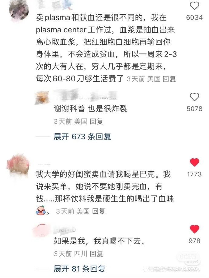 🔹“賣血”:指美國人有償獻血,美國人一年最多可以獻血104次。 在美國,一次標準的有償獻血收益通常在30美元到50美元之間,為了鼓勵美國人賣血,血漿中心會退出首抽獎勵、連抽獎勵的激勵機制。