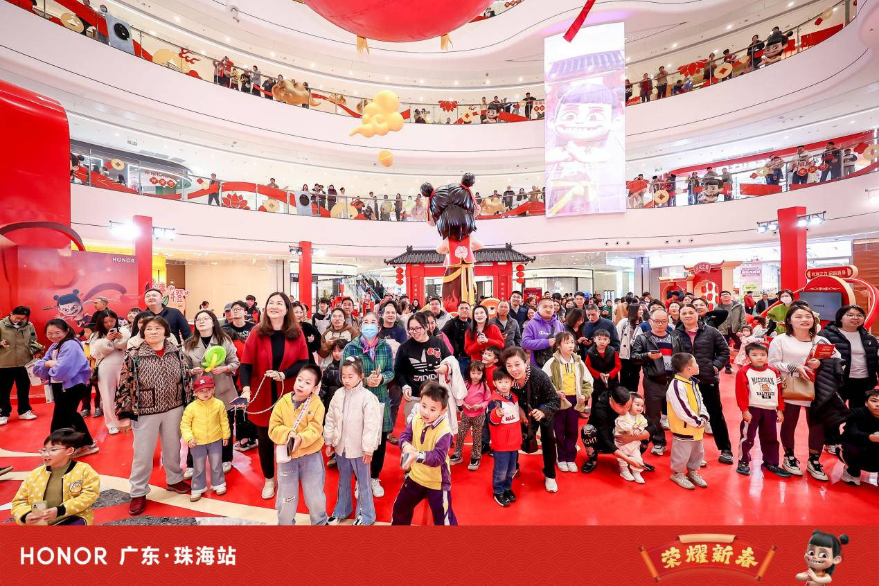 1月18日,榮耀新店在珠海斗門世榮萬達廣場開業,並攜手春節大片《哪吒之魔童鬧海》,在珠海斗門萬達廣場中庭盛大開啓榮耀AI魔法市集快閃活動。以市集互動、現場演出、好禮抽獎等豐富環節,巧妙融合科技“魔法”與傳統文化,為市民帶來一場充滿科技感與年味的沉浸式魔法體驗。