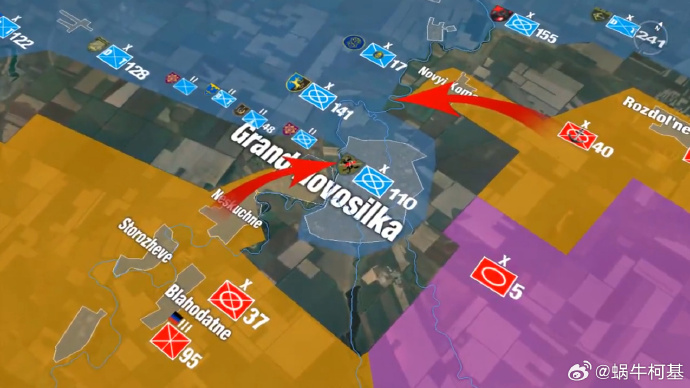6、大諾沃西爾卡:俄羅斯軍隊完全佔領了弗雷米夫卡並從北部和東部進入大諾沃西爾卡,控制了大部分卡斯拉加奇區。