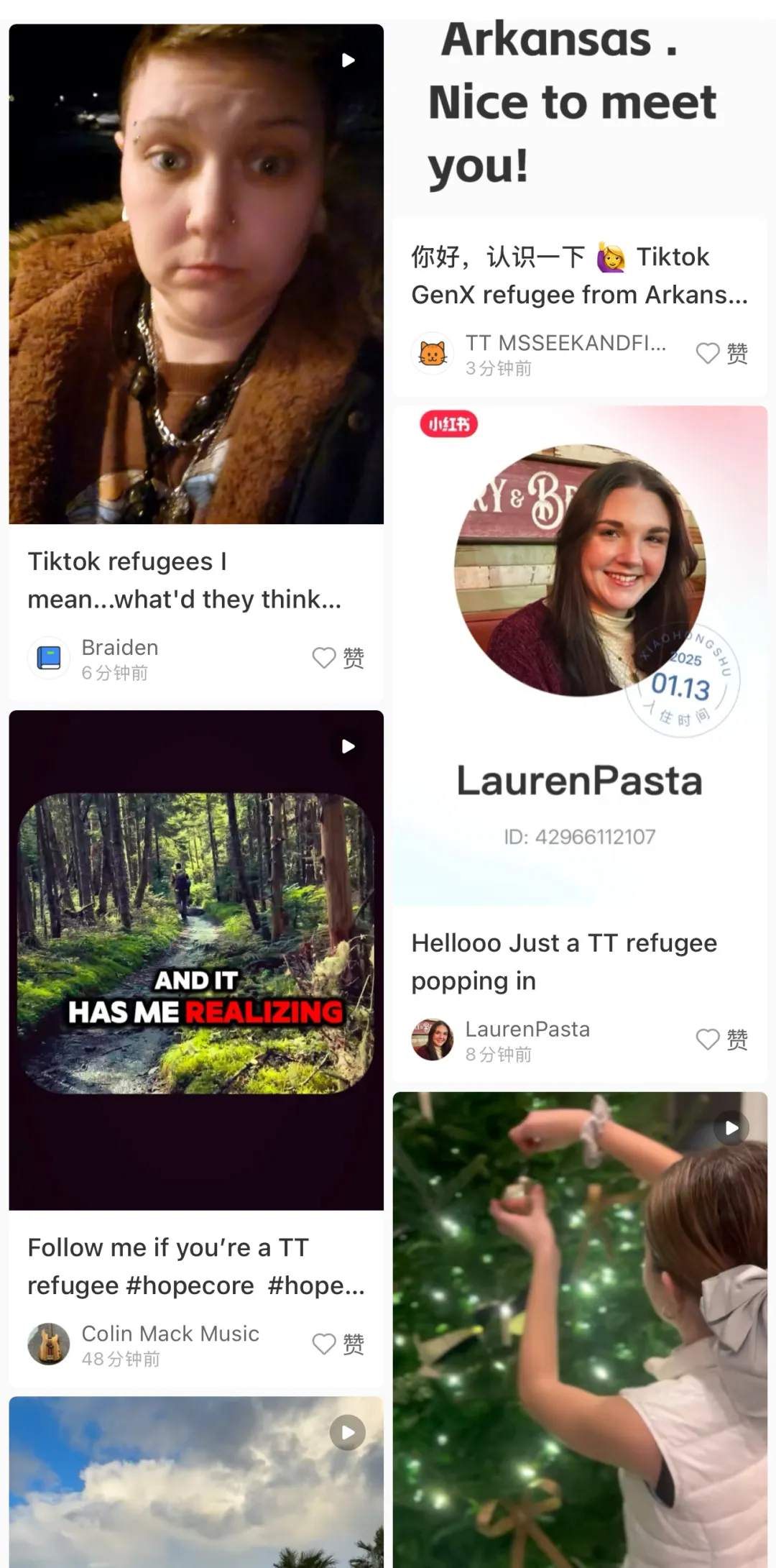 “中國的家人們好,我是美國來的,很高興能作為一個TikTok難民來到這裏。我很興奮,但同時也有點害怕。”